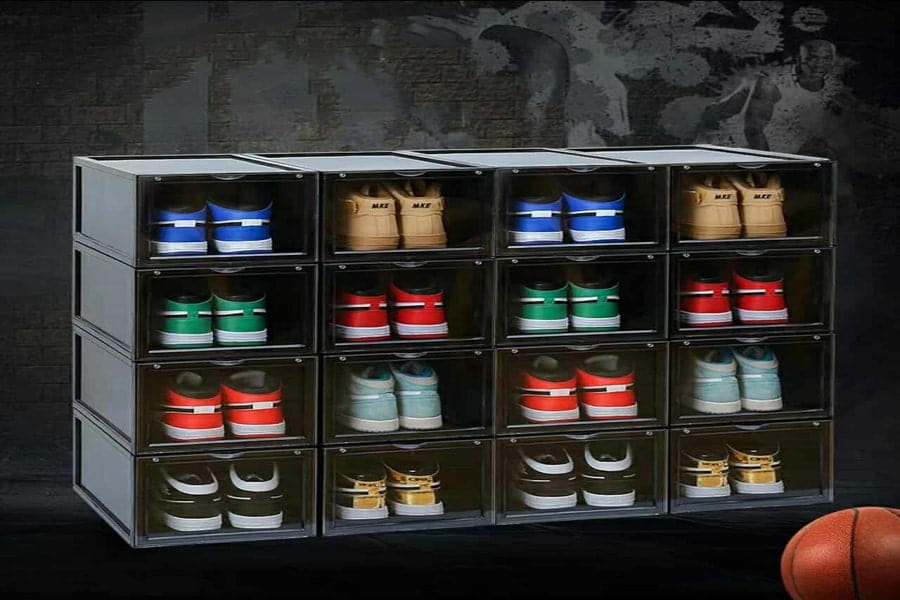 Tránh dùng những hộp đựng bằng bìa cạc tông vì trông rất cồng kềnh và gây khó khăn cho bạn trong việc tìm giày.